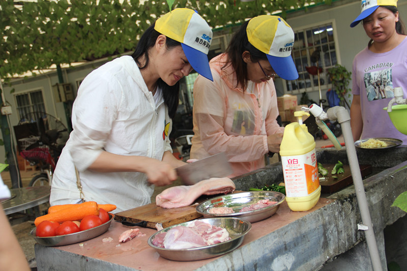 11:30分開始分桌集體做午餐了,各路大神盡顯神通的時候到了.....